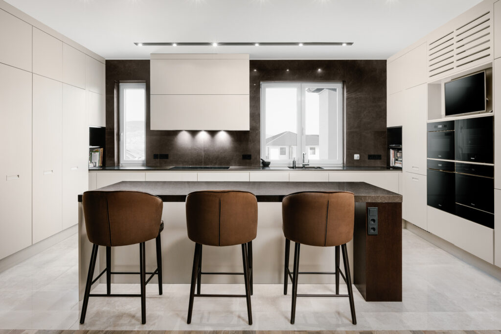 Kivitelezett projektekPrémium modern konyhabútor | kő, fa és festett bútor összhangjaKonyhabútor, Luxus, Modern