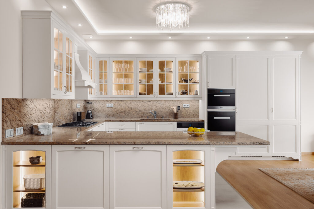 Kivitelezett projektekKlasszikus elegáns luxus | világos bútor márvány pulttalGránit, Klasszikus, Konyhabútor