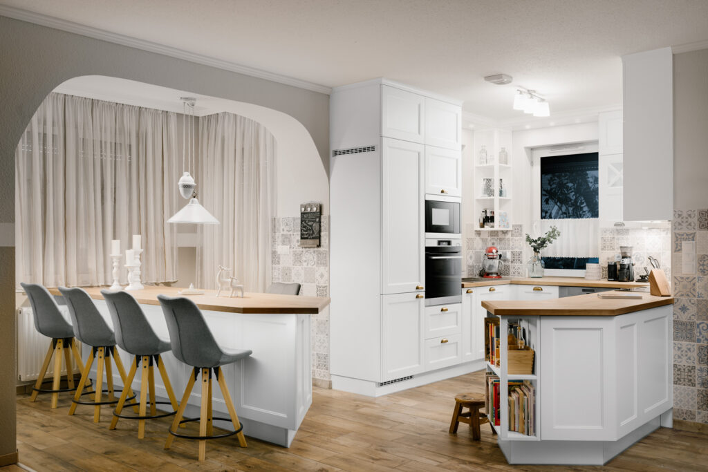 Kivitelezett projektekStílusos fehér festett bútorzat, hangulatos beülővelÉtkező, Konyhabútor, Modern