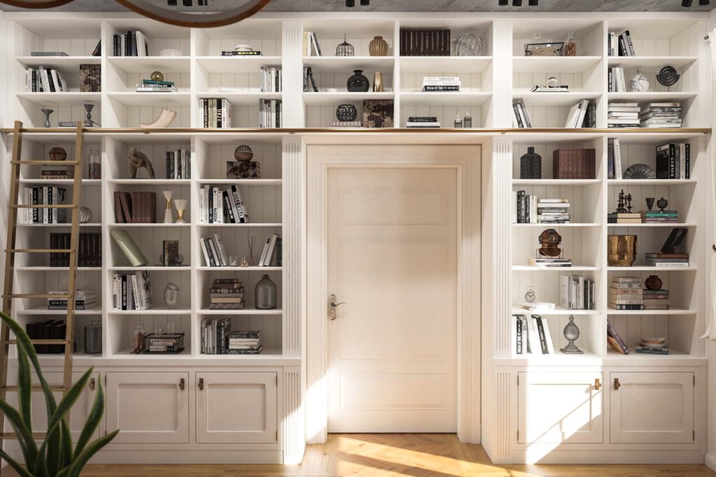 Tervezési projektekEgyedi könyvtár és dolgozószoba fa létrávalDolgozószoba, Klasszikus, Látványtervek, Provence