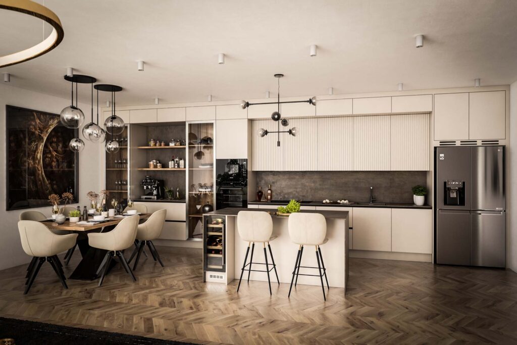 Designos megoldás a tetőtérben | modern zöld, fekete és fa egysége