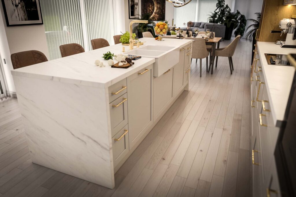 Tervezési projektekKülönleges frontmegoldások kombinációja | Provence hangulat, márványhatású munkalapKlasszikus, Konyhabútor, Látványtervek, Modern, Nappali, Provence