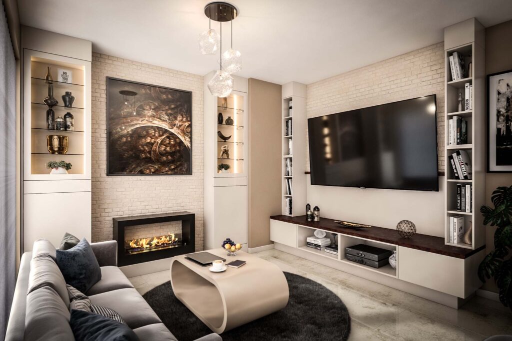 Tervezési projektekModern elegáns budapesti lakás berendezveKonyhabútor, Látványtervek, Modern, Nappali